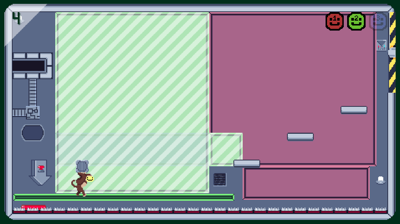 - Not fall into the sharp deadly spikes.