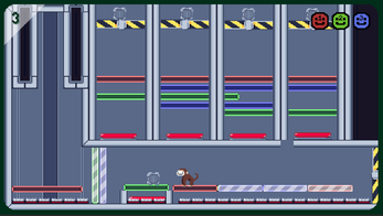 A side-scrolling puzzle platformer with an exclusive-or twist. Various platforms exist in multiple additively-colorful planes of existence: red, green, and blue. You are a laboratory monkey whose bestowed mask enables you to selectively and intricately interact with them. Two platforms of contrasting hues mask each other out, becoming zilch in mutual intersection. Escape the facility, phasing your way out.